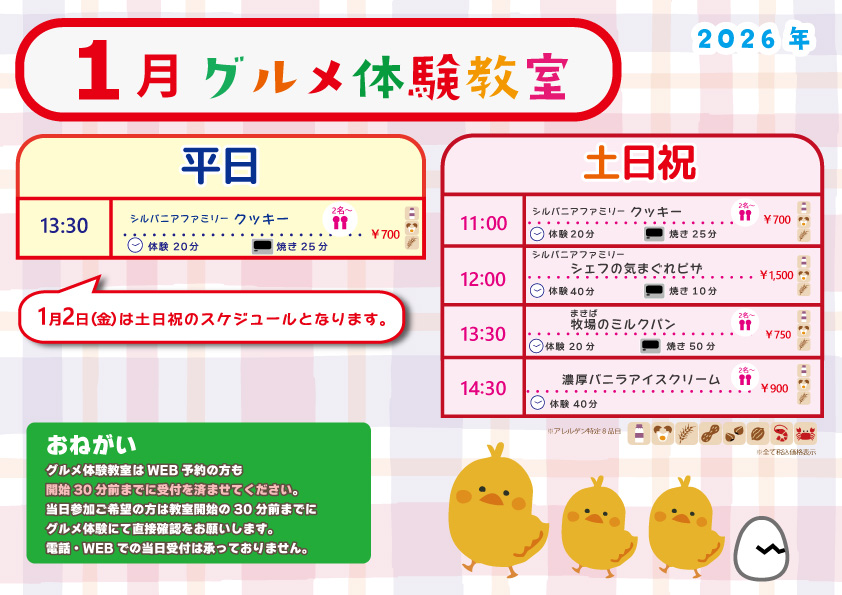 グルメ体験教室のスケジュールをご案内!