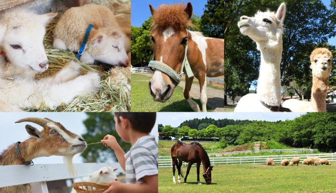 牧場エリアに放牧しているヤギやうま、アルパカは、人の近くに来ることがあります。