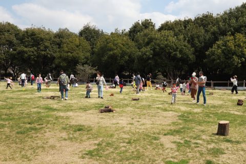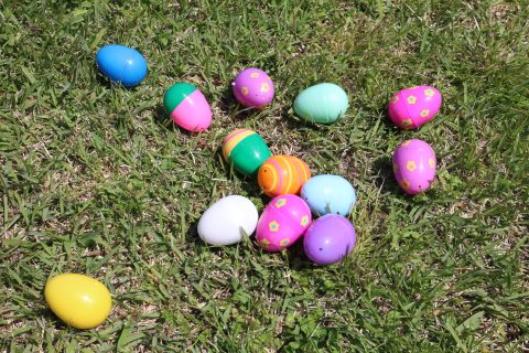 広い芝生のエリアを使ってお菓子の入った卵型カプセル(イースターエッグ)を探そう!
