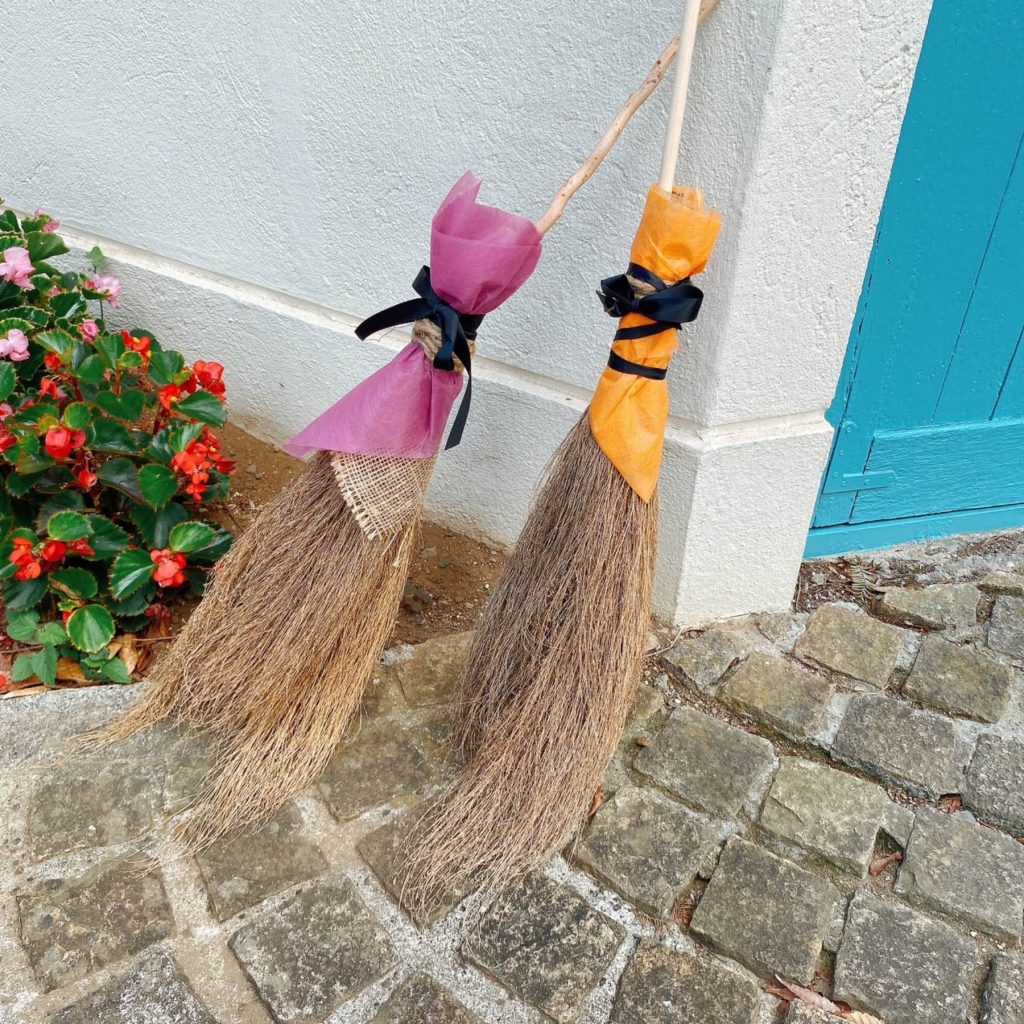 園内で育てたコキアの枝を使ってオリジナルの箒(ほうき)を作ってみよう!