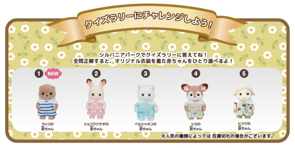 【クイズラリー情報】 シルバニアパークへ来場したらクイズラリーへ挑戦しよう! クイズに答えて、赤ちゃん人形をお迎えしてね!