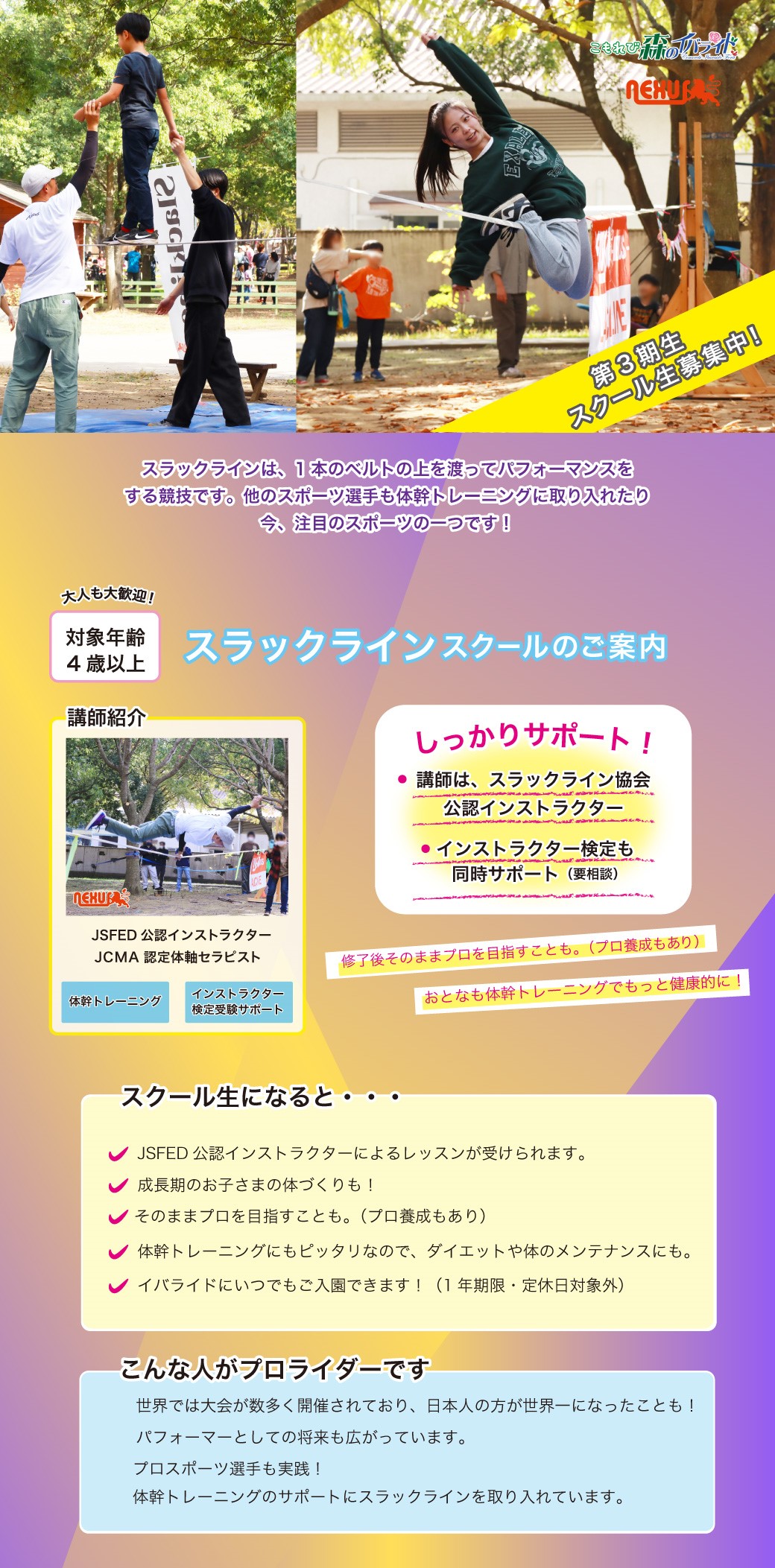 スラックラインスクール【S-JUMP】第3期生募集中!