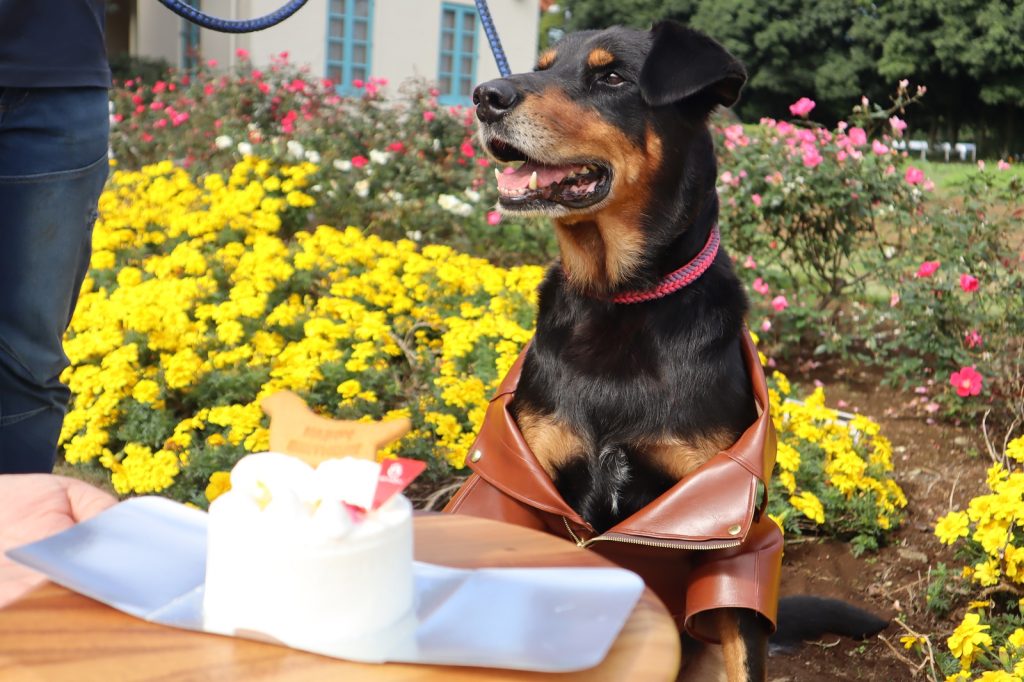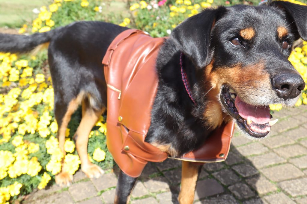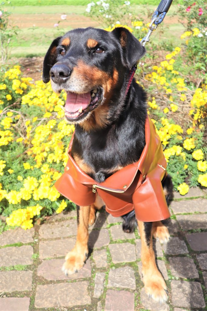 撮影日、ジョーくんにはスタッフお手製お洋服をプレゼント! ジャケットがカッコいい!